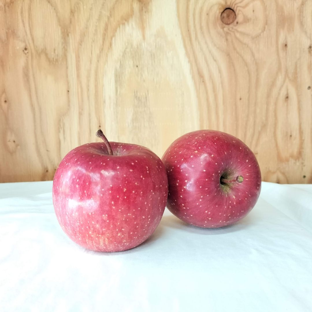「サンふじ」は言わずと知れたりんごの王様です。袋掛け栽培を行う「ふじ」と異なり、太陽の光をいっぱいに浴びた「サンふじ」は蜜がたっぷり入り、糖度が高く、非常にジューシーなりんごになります。また、近年食味の良さから大注目の「葉とらずりんご」ですが、色むらが出る難点があります。当園はりんごに味をのせるギリギリを見極め、りんごが綺麗に色づくギリギリに最小限の葉取りを行う「準葉とらずりんご」仕様です。また、園地が山側にあるため、寒暖の差が激しいことでりんごの甘さが増します。山のりんごは美味しい!が誠か否か…是非ご自身で体験して下さい。